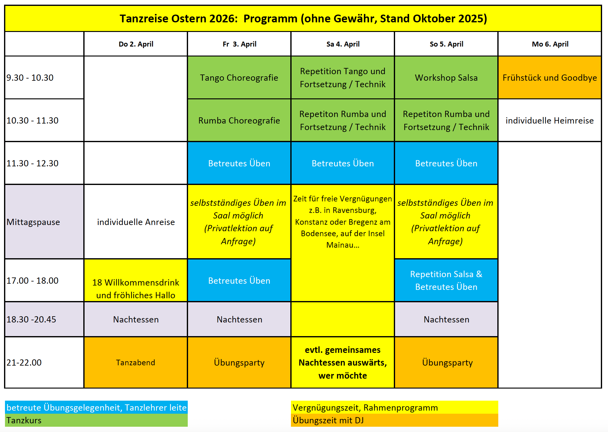 Das Programm beginnt am Anreisetag um ca. 18.00 Uhr.